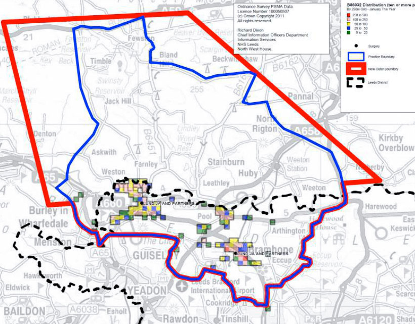 The Practice is currently able to register new patients within our authorised practice boundaries as shown on the map below. This area covers Otley, Bramhope, Pool and Arthington in the Leeds metropolitan district as well as Weston, Askwith, Huby, and Fewston in Harrogate District.